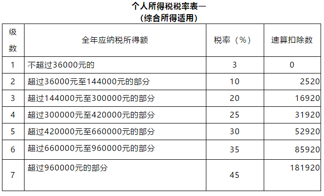 5、个人所得税最新税率表
