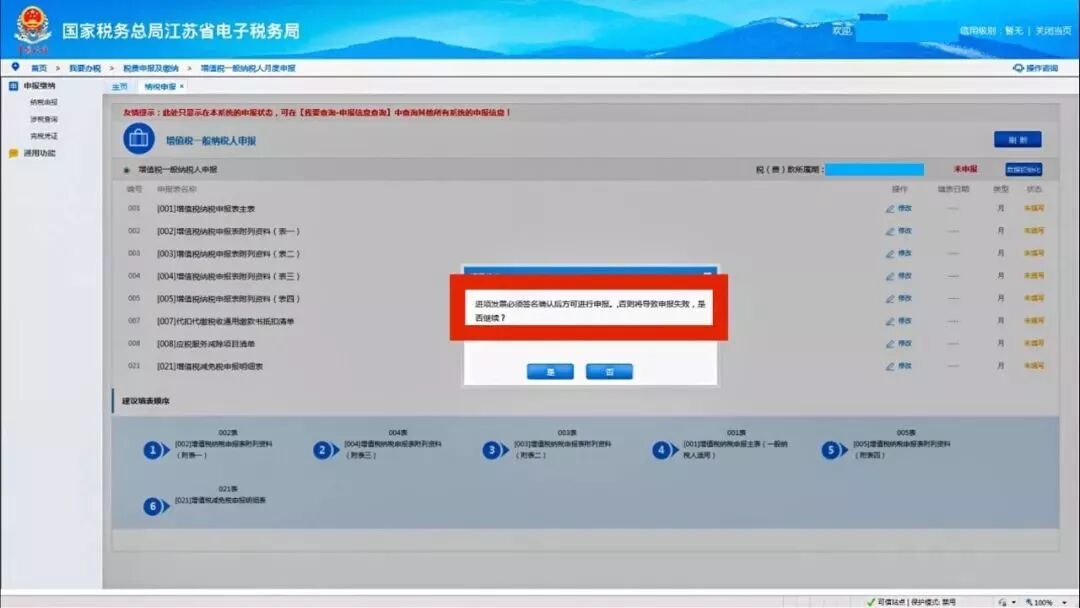 特别提示:当存在未签名进项发票数据时,系统会显示申报失败,报错原因为:未获取到进项信息。