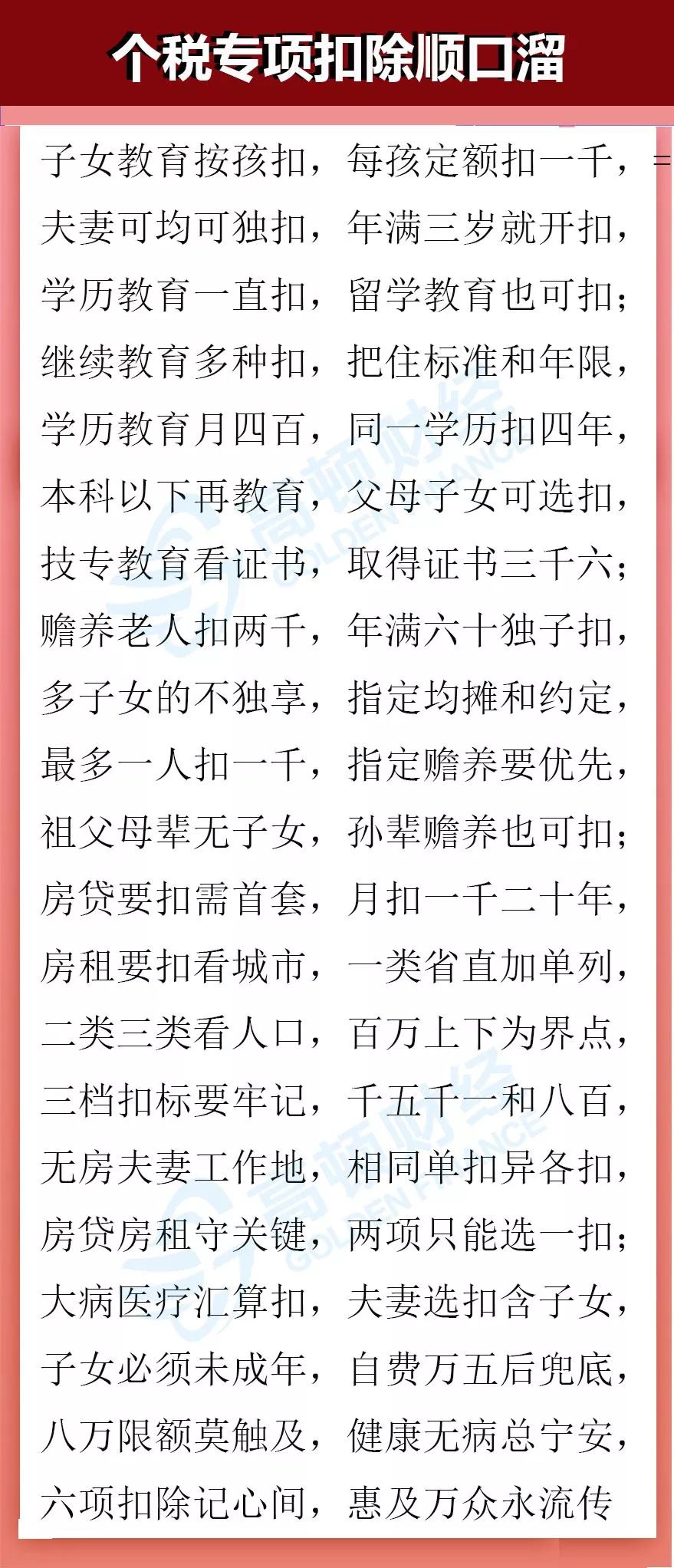 个税专项扣除顺口溜!有用,转存!
